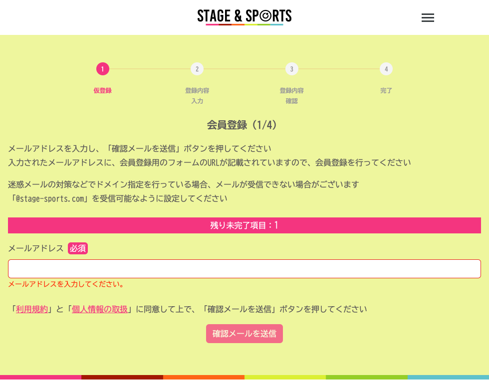 STAGE-SPORTSをご利用いただくには、会員登録が必要になります。以下の手順で会員登録を行ってください。