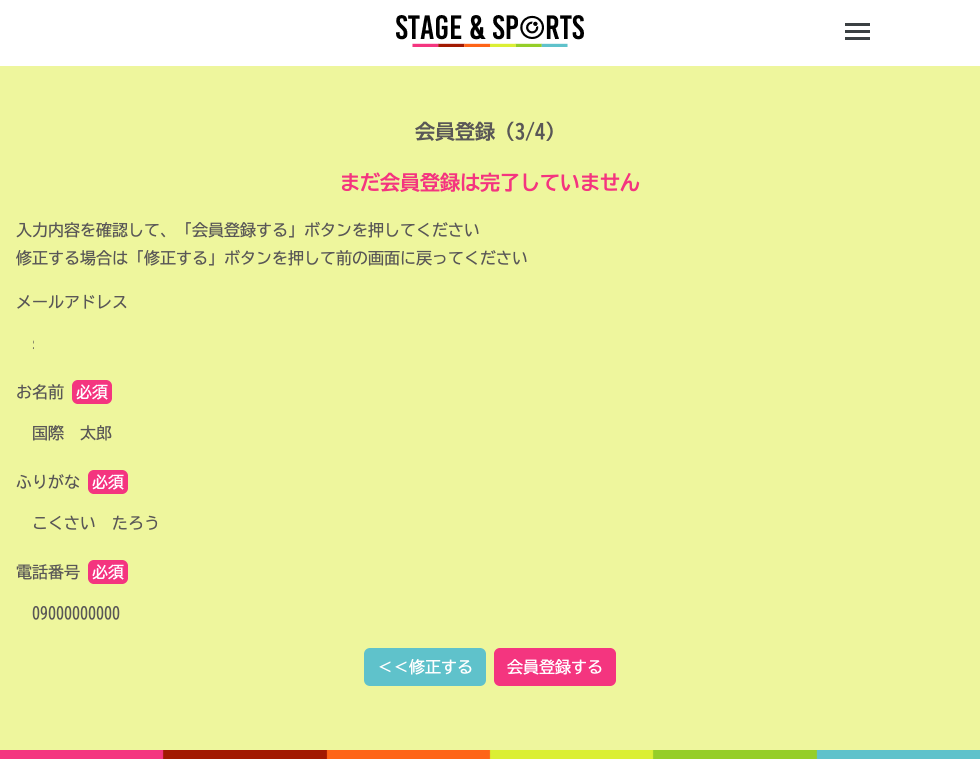 登録する内容を確認して、【会員登録する】ボタンを押してください